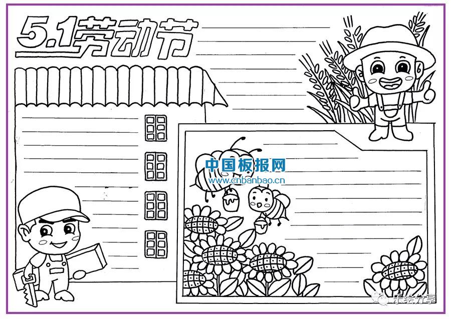 勞動節手抄報手繪模板黑白版